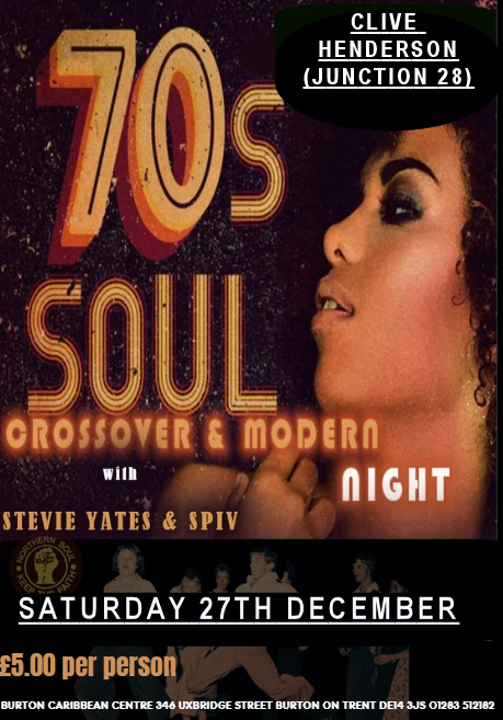 On Saturday 27th 2025 DJ’s Spiv & Stevie Yates will be returning to The BCA Community Centre in Burton on Trent for the Christmas Edition of the 70’s Crossover & Modern Soul Night’s that have become more popular in Burton over the last year. As always, they will be doing their very best to keep the dance floor full by playing some of those rare crossover track that you all love to hear.